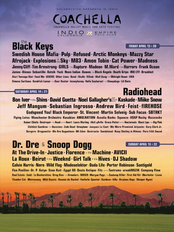 2012 Coachella Festival on April 13 – 15 and April 20 – 22 (Empire Polo Club, Indio)