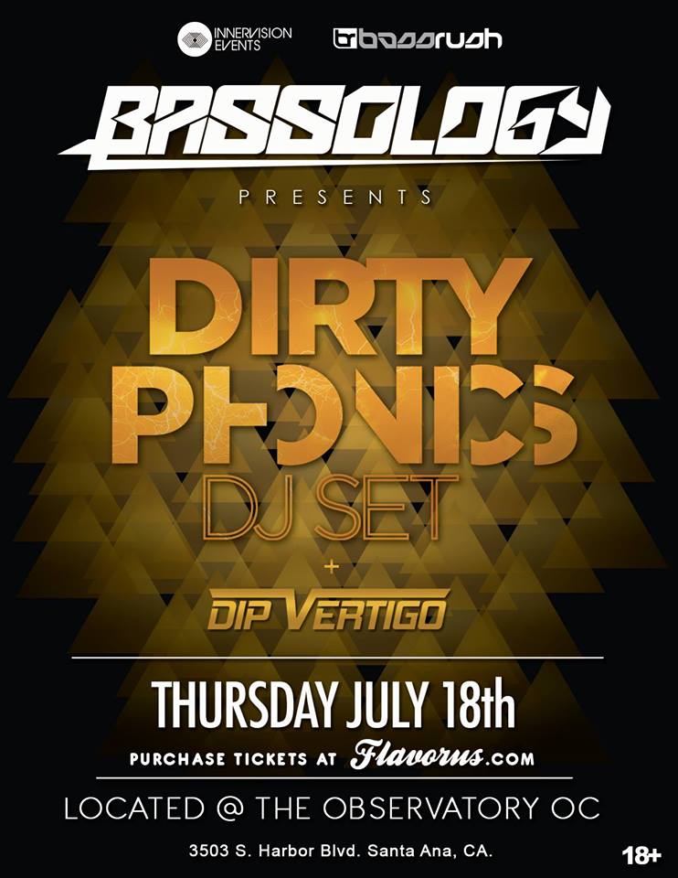 Tonight, the French quartet of Dirtyphonics will be taking over the stage at the Observatory in Santa Ana. Charly, Thomas, Pho and Pitchin are known for their hard hitting drum & bass and electro tracks such as “Dirty” as well as their remixes of Excision and Datsik’s “Deviance” and Nero’s “Me and You”. Opening sets for the night will include Neuropunk and Dip Vertigo with MC Ridda.