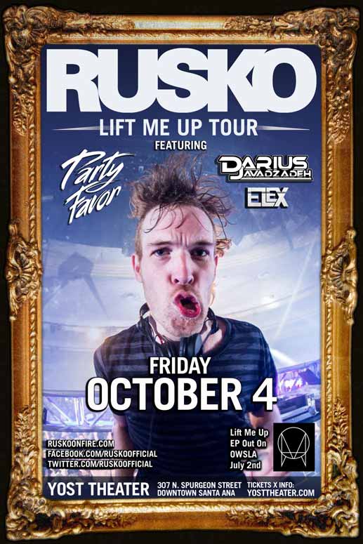 Chris Mercer. Yost Theater. Tomorrow night. Who is that, you say? None other than Rusko himself, starting off his Life Me Up Tour in Santa Ana on Friday, October 4. Performing before the bass master will be Elex, Darius Javadzadeh, and Party Favor. Tickets for the night are $30 as of now with doors opening at 9:30pm. Be ready for some killer drum and bass and whatever else the man might throw in there!