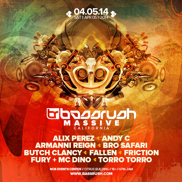 Insomniac will be putting on a California edition of Bassrush Massive on Saturday, April 5 at the NOS Events Center in San Bernardino. Performing at the show will be Alix Perez, Andy C, Armanni Reign, Bro Safari, and Butch Clancy. Also playing will be Fallen, Friction, Fury + MC Dino, and Torro Torro. The 18+ shw will go from 6pm till 2am.