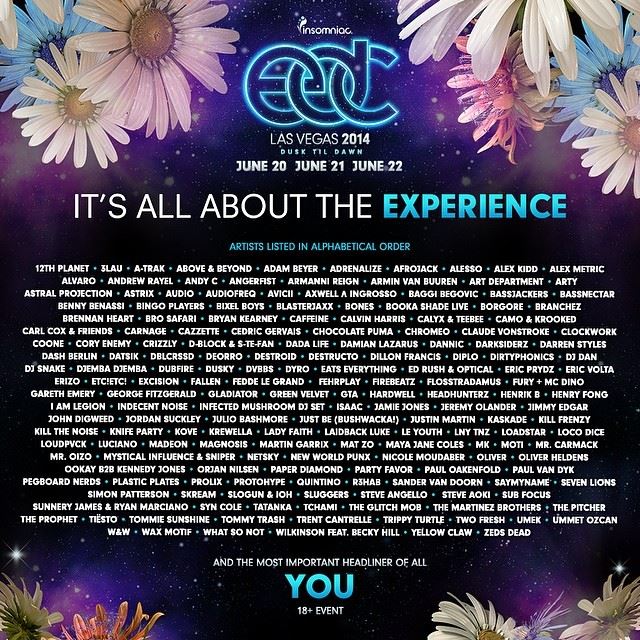 Months of anticipation have finally lead to Insomniac CEO Pasquale Rotella announcing the Electric Daisy Carnival 2014 lineup less than an hour ago. The three day festival will take place Friday June 20, Saturday June 21, and Sunday June 22 at the Las Vegas Motor Speedway.