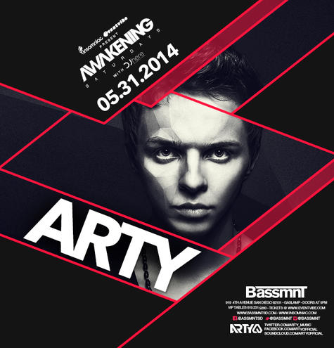 “Join us on Saturday 5.31.2014 as Bassmnt presents ARTY for #Awakening Saturdays! From anonymity, Arty has placed Russia on the dance map. Creating every opus with the natural flair of a true composer, it’s no wonder that he’s a perennial staple in the much sough-after DJ Mag’s Top 100 pole. His melodic masterpieces have mesmerize crowds at every stunning live turn around the globe. Come experience the artist that thousands of faithful fans, music authorities, and the dance elites have all dubbed as the future of dance music!”