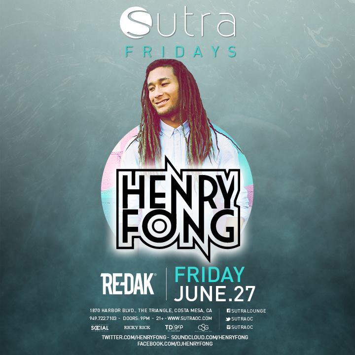 Henry Frong will be playing at Sutra in Costa Mesa this Friday, June 27. The Florida native, Los Angeles resident has been making quite a name for himself with songs like “Encore”, “Jump”, and “Stand Up”. Opening up for the headliner will be Redak, a resident DJ for the club. Tickets for the 21+ show are $15 as of now, with doors opening at 9pm.