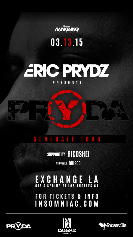 As part of Exchange LA’s Awakening Fridays, Eric Prydz will be taking over the decks for the March 13th show. The event is the second to last stop for his Pryda ‘Generate’ Tour which has seen him take the stage in cities like Montreal, New York, Baltimore, Chicago, Denver, and El Paso. Also performing Friday night will be Ricoshei and Brisco. Here’s a little preview of what the night has in store: