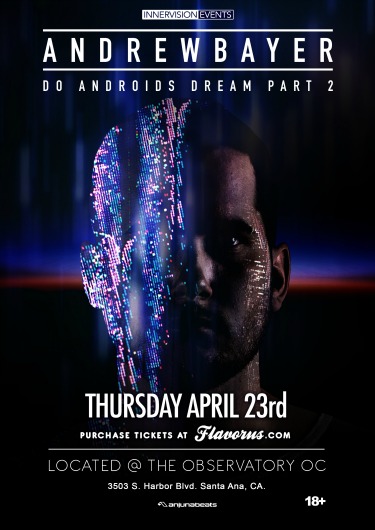 Trance and progressive house producer Andrew Bayer will be performing at the Observatory in Santa Ana tonight, Thursday, April 23rd, in association with Innervision Events. The appearance will be a part of his Do Androids Dream North America Tour Part 2 to promote his EP of the same name that was released a month ago. The London based artist has produced songs such as “Bullet Catch“, “Once Lydian“, and “England“. Tickets for the 18+ show are $9 (and 90% sold out!!) with doors opening at 7pm.