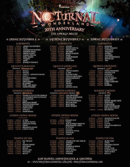 Speaking of the aforementioned Nocturnal Wonderland After Party, how about the festival itself? Sander Van Doorn, Knife Party, Galantis, Datsik, Yellow Claw, Madeon, Da Tweekaz, Nicole Moudaber, Lane 8, Graham Funke, Donald Glaude, Dr. Fresch, and Popeska are just some of the DJs scheudled to perform. It’s looking to be something special as it’s the 20th Anniversary of the Insomniac festival.