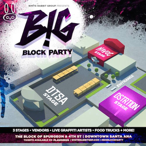 There will be three stages at the event (as seen in the map below): Havoc Stage (inside the theater), DTSA Stage (in the larking lot), and DSTORTION Stage (to the right of the main entrance). Live street art, food trucks, vendors, and performers will be throughout the area as well.