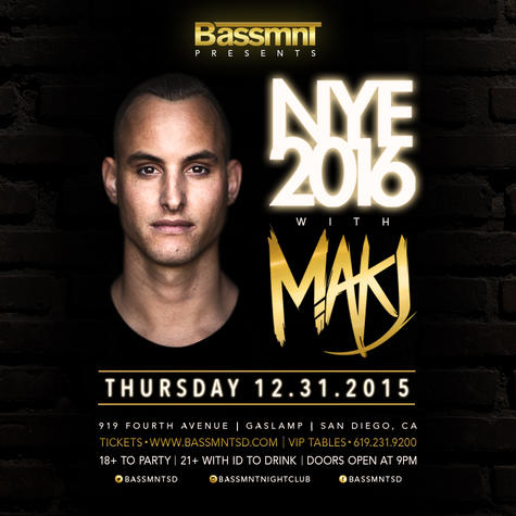 Bassmnt, San Diego – Thursday, December 31st: Bassmnt in San Diego will be bringing in 2016 right with the help of MAKJ. The night will also serve as the grand reopening of the club, so you know it’s going to be something special. The club will be debuting a new sound system, new LED wall, new lasers, new lights, and more!