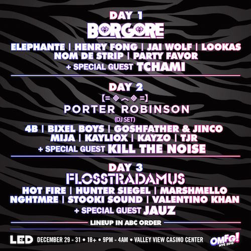 LED OMFG at Valley View Casino Center in San Diego – Tuesday December 29 – Thursday, December 31st: Celebrate the New Year for three days as part of LED OMFG in San Diego. The three special guests that have been announced in Tchami, Kill The Noise, and Jauz are reason enough to go alone, but when you add in the names already listed it’s a forgone conclusion.