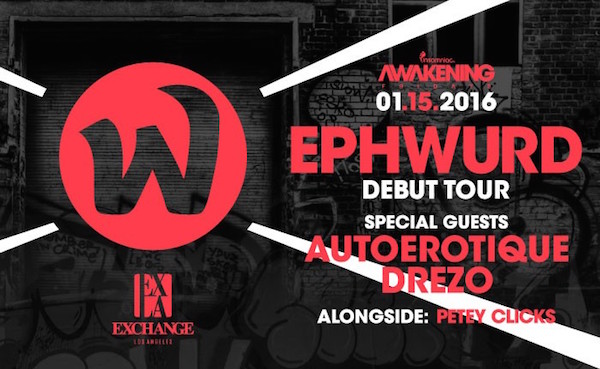 Ephwurd will be making their tour debut at Exchange LA this Friday, January 15th. As part of Insomniac’s Awakening Fridays, the night will also include the talents of Autoerotique, Drezo, and Petey Clicks.