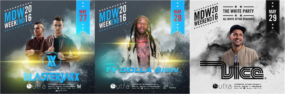 Sutra, Costa Mesa: Tonight, Blasterjaxx will be playing at Sutra with Ty Dolla $ign to follow on Satutday, May 28th. VIce will wrap things up with The White Party on Sunday, May 29th.