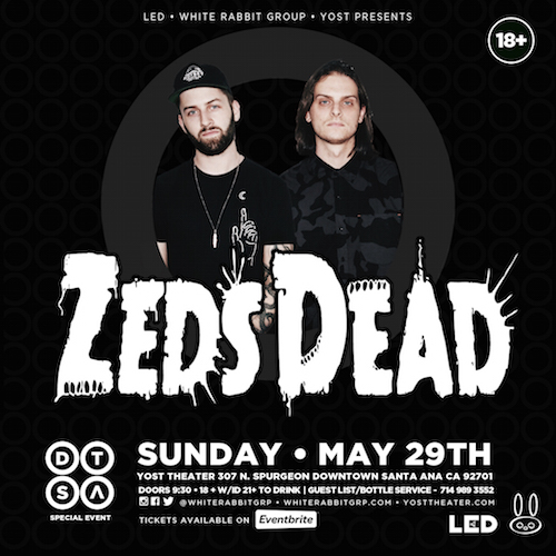 Yost Theater, Santa Ana: On Sunday, May 29th, dubstep duo Zeds Dead will be playing at the Yost Theater in Santa Ana.